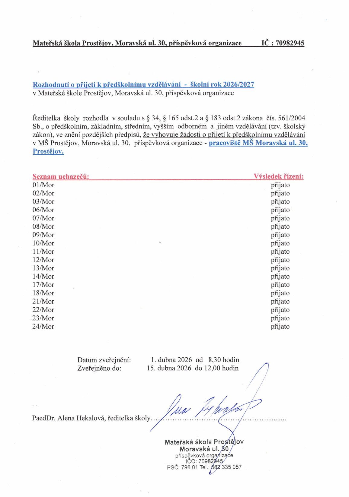 Mateřská škola Prostějov, Moravská ul. 30, příspěvková organizace